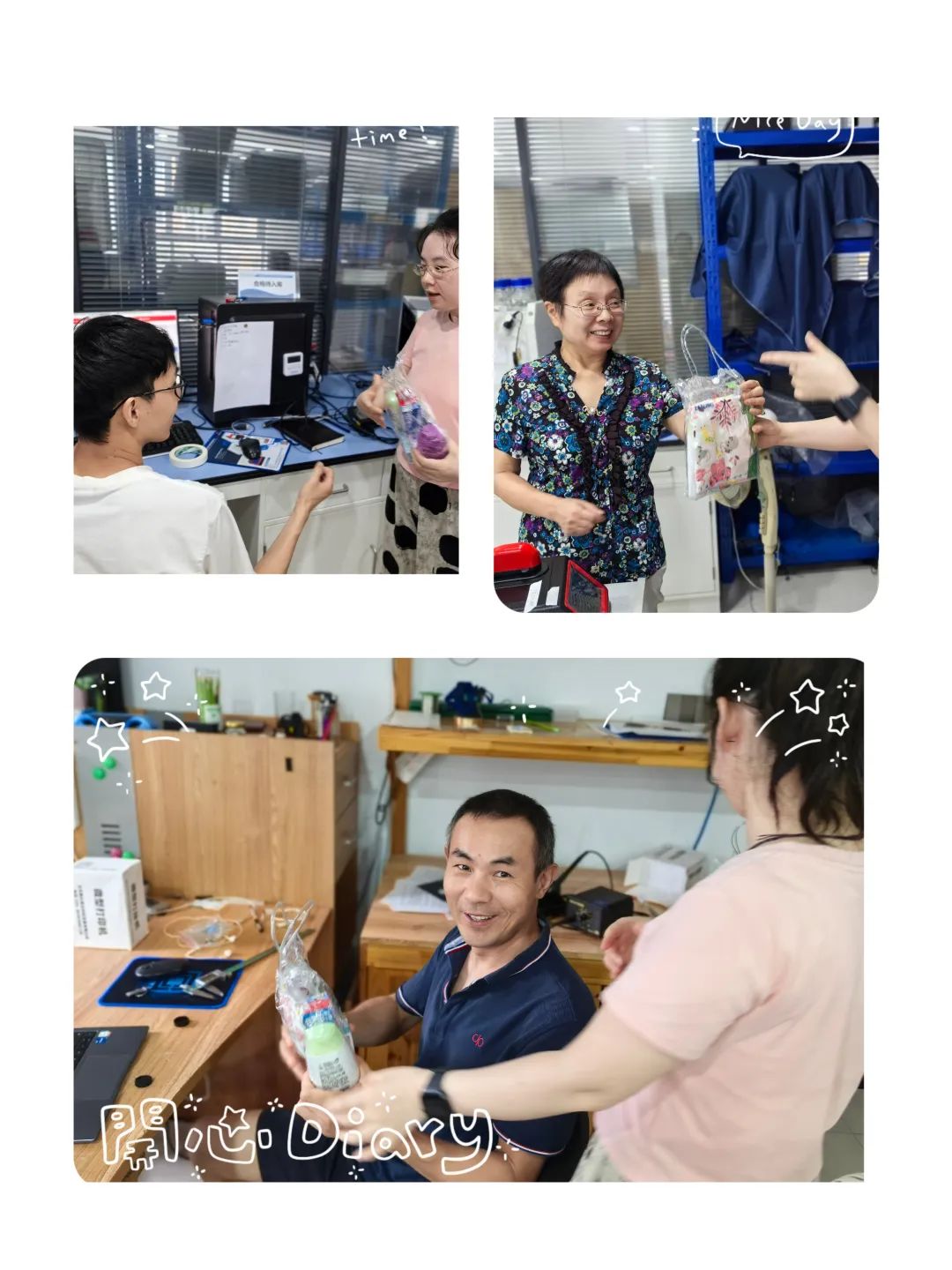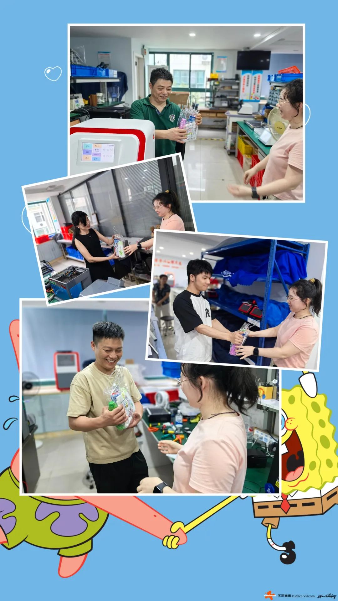 盡管窗外風急雨驟,道路濕滑難行,但張淑媛一行心系企業職工,堅持按計劃履約。當他們帶著精心準備的清涼慰問品踏入我司時,風雨浸濕了衣衫,卻更彰顯了此行的真誠與分量。公司總經理王培培及職工代表深受感動,熱情迎接:“臺風天路這么難走,真沒想到大場開發區的同志們還堅持來給我們送清涼!這份心意太重了,太感謝了!”