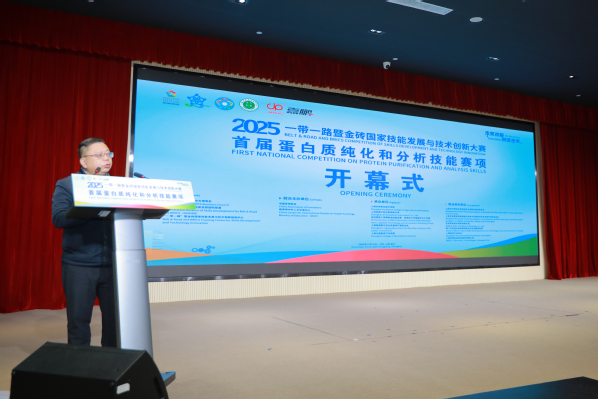 在開幕式上,我司總經(jīng)理王培培先生作為賽項競賽工作組副主任發(fā)表致辭。他強(qiáng)調(diào):"蛋白質(zhì)純化與分析作為生物制藥、基因工程等領(lǐng)域的核心技術(shù)環(huán)節(jié),直接關(guān)系到創(chuàng)新藥研發(fā)效率與精準(zhǔn)醫(yī)療落地質(zhì)量。當(dāng)前我國生物制藥產(chǎn)業(yè)專業(yè)人才存在顯著缺口,其中蛋白質(zhì)分析相關(guān)技能人才的短缺尤為突出。這場中國區(qū)賽事的舉辦,正是精準(zhǔn)對接產(chǎn)業(yè)需求,以賽促教、以賽促學(xué)的關(guān)鍵實踐。" 他的發(fā)言獲得了現(xiàn)場嘉賓和參賽師生的高度認(rèn)同。