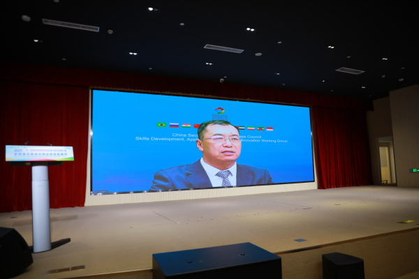 金磚國家技能發(fā)展與技術(shù)創(chuàng)新大賽組委會執(zhí)委會主席、一帶一路暨金磚國家技能發(fā)展國際聯(lián)盟理事長、金磚國家工商理事會技能發(fā)展、應(yīng)用技術(shù)與創(chuàng)新中方工作組組長劉振英博士帶來線上講話,明確指出本次大賽是促進(jìn)金磚國家間教育合作、技能開發(fā)、未來技能人才聯(lián)合培養(yǎng)、創(chuàng)新技術(shù)最佳實踐分享及人文交流的長效合作機(jī)制。